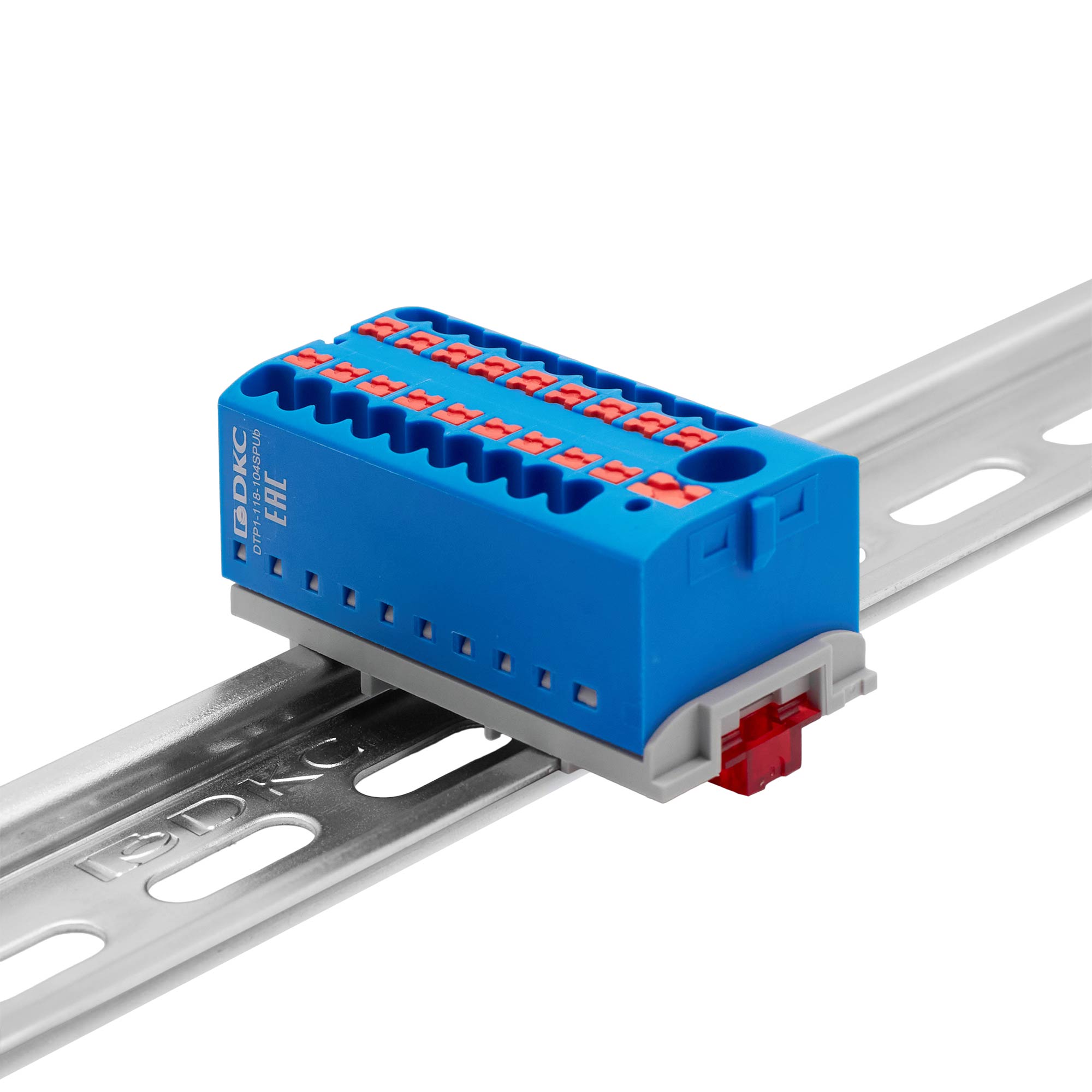 Название производителя: Блок распределительный с верт. адаптером на рейки шириной 15/35мм, зажим push-in, 1 ввод 6 кв.мм, 18 точек подключения 2,5 кв.мм, синий
