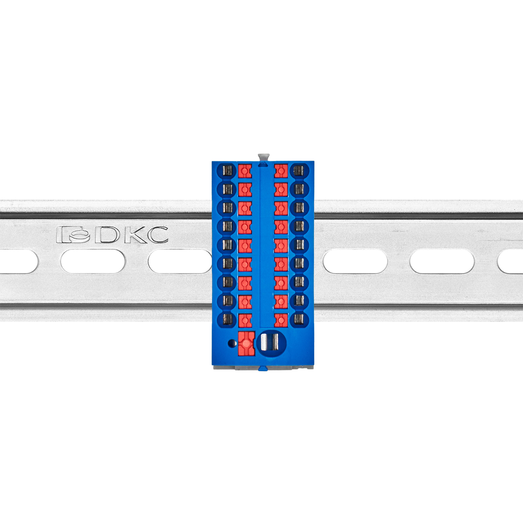 Блок распределительный с верт. адаптером на рейки шириной 15/35мм, зажим push-in, 1 ввод 6 кв.мм, 18 точек подключения 2,5 кв.мм, синий