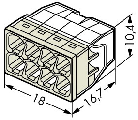 Wago клеммы для одножильных проводников; макс. 2,5 мм²; 8-проводн.; прозрачный корпус; светло-серая крышка