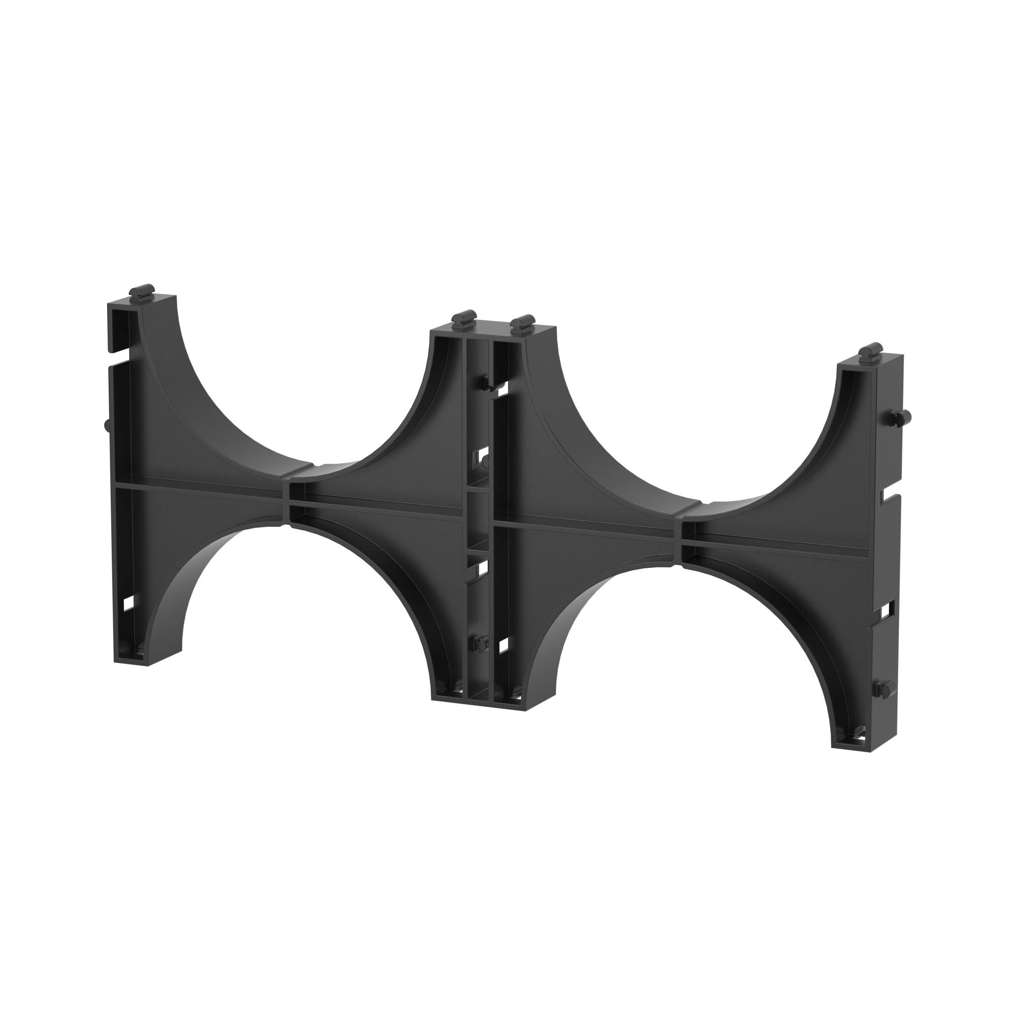 Назначение держателя расстояния (кластера) для двустенных труб - закрепление труб в определенном положении и сохранение между ними фиксированного расстояния. Кластер имеет пазы для двух труб диаметром 110 мм. Если необходимо, кластеры могут быть соединены между собой, чтобы разместить большее количество труб.