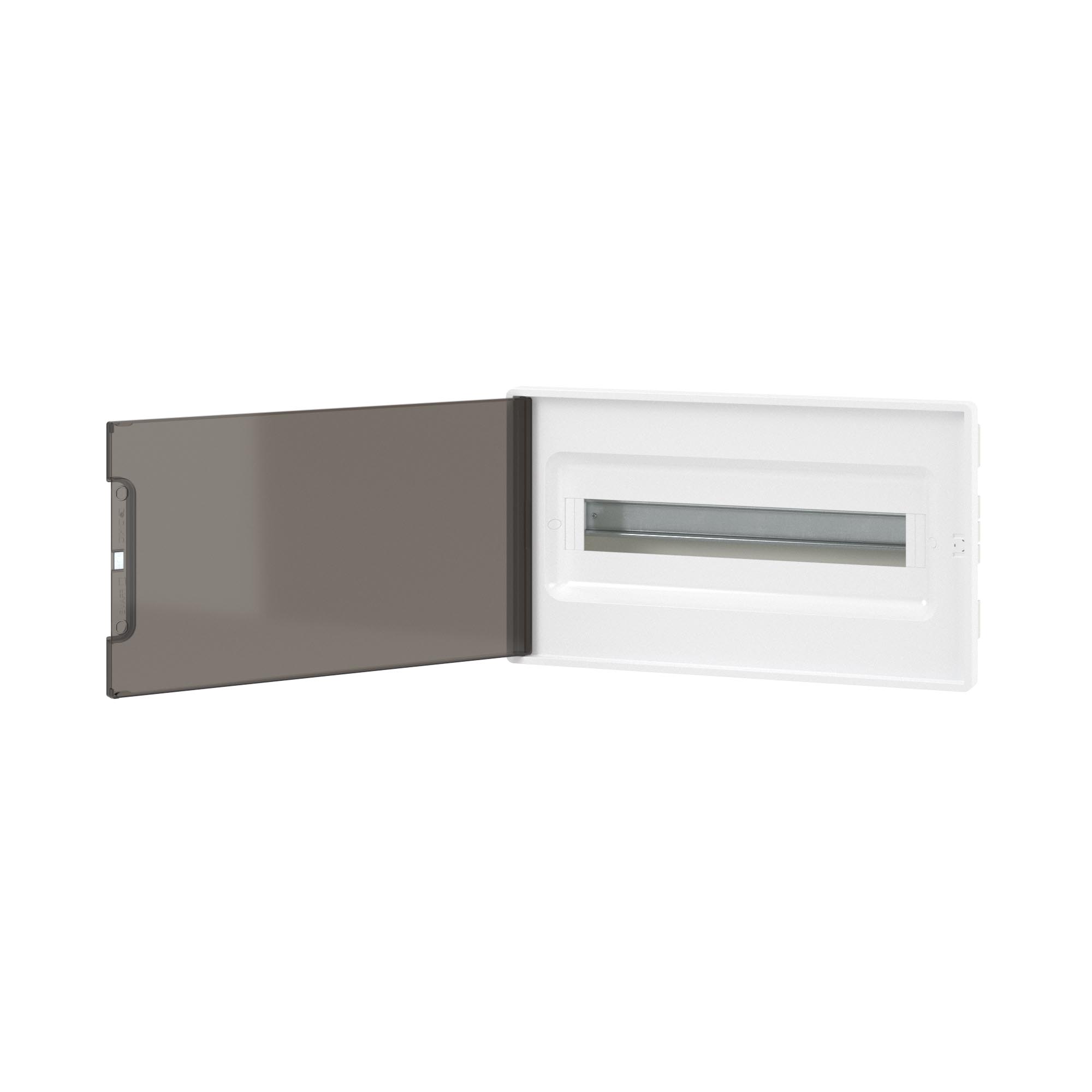 DKC Щиток 18 мод встраиваемый FRAME, белый, с тонированной дверцей, с 2 шинами PEN на 8 и 10 отв.