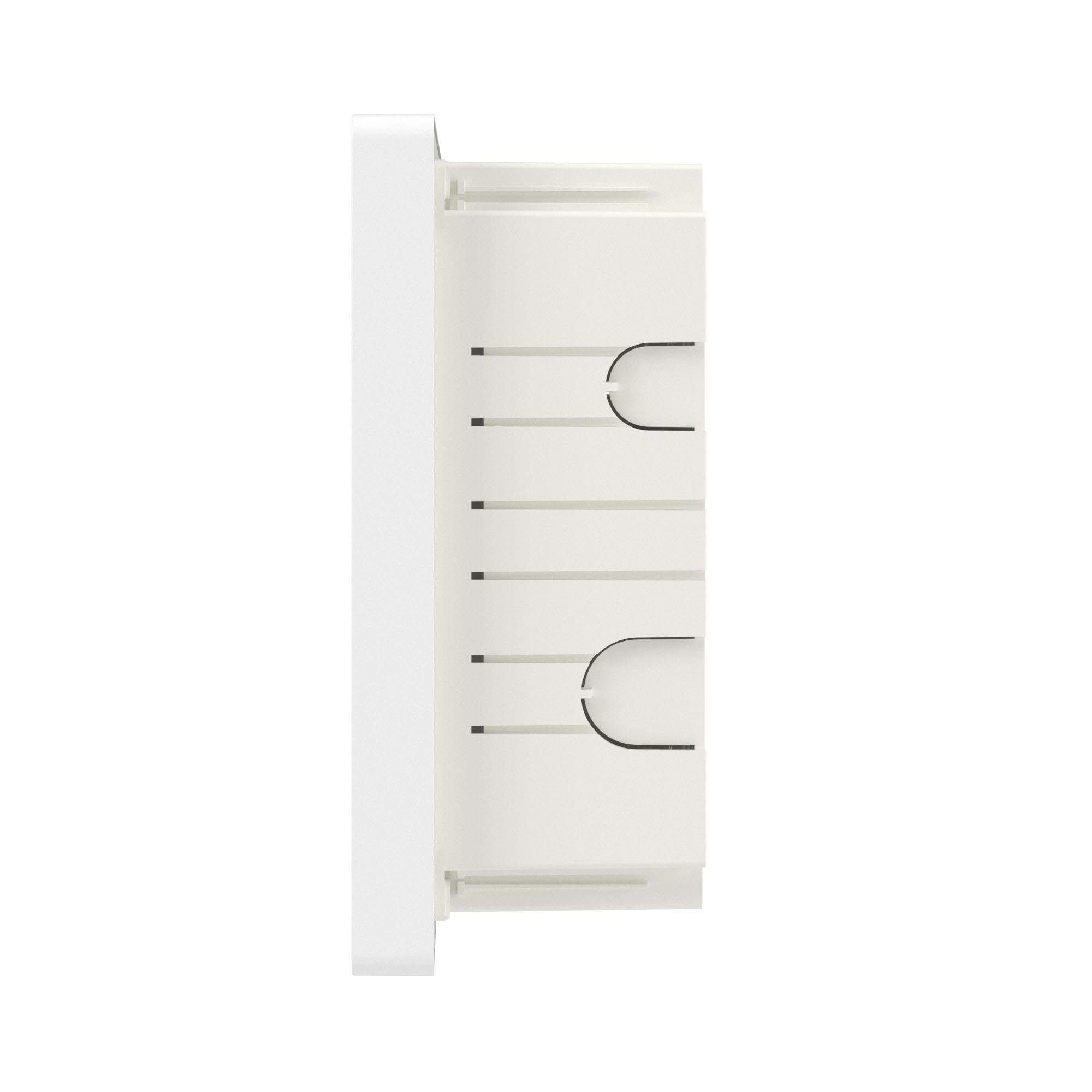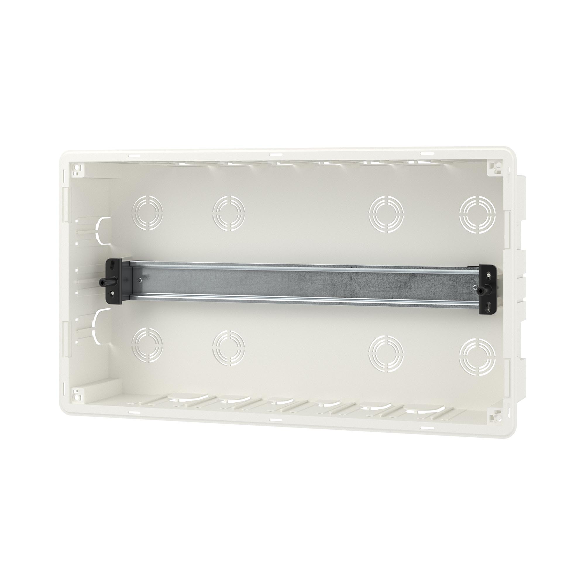 Встраиваемый щиток «Фрейм» (FRAME) предназначен для скрытого монтажа в бетонные\кирпичные стены. Применяется для установки модульных устройств. Съёмная рама с DIN-рейками позволяет сначала смонтировать и подключить оборудование и затем установить его в основание щитка в стену. Установка стандартных латунных шин возможна по всем стенкам корпуса и на боковую сторону съёмной рамы щитка. Единый корпус шинодержателя можно разделить на сегменты и использовать отдельно. Симметричный корпус щитка. Количество модулей- 18. Цвет корпуса белый, цвет двери- прозрачная, ширина- 416,4 мм, высота- 242,4 мм, глубина- 101 мм. Материал- термостойкий и ударопрочный пластик. В комплекте DIN-рейка из гальванической оцинкованной стали, 2 шины PEN на 8 и 10 отверстий
