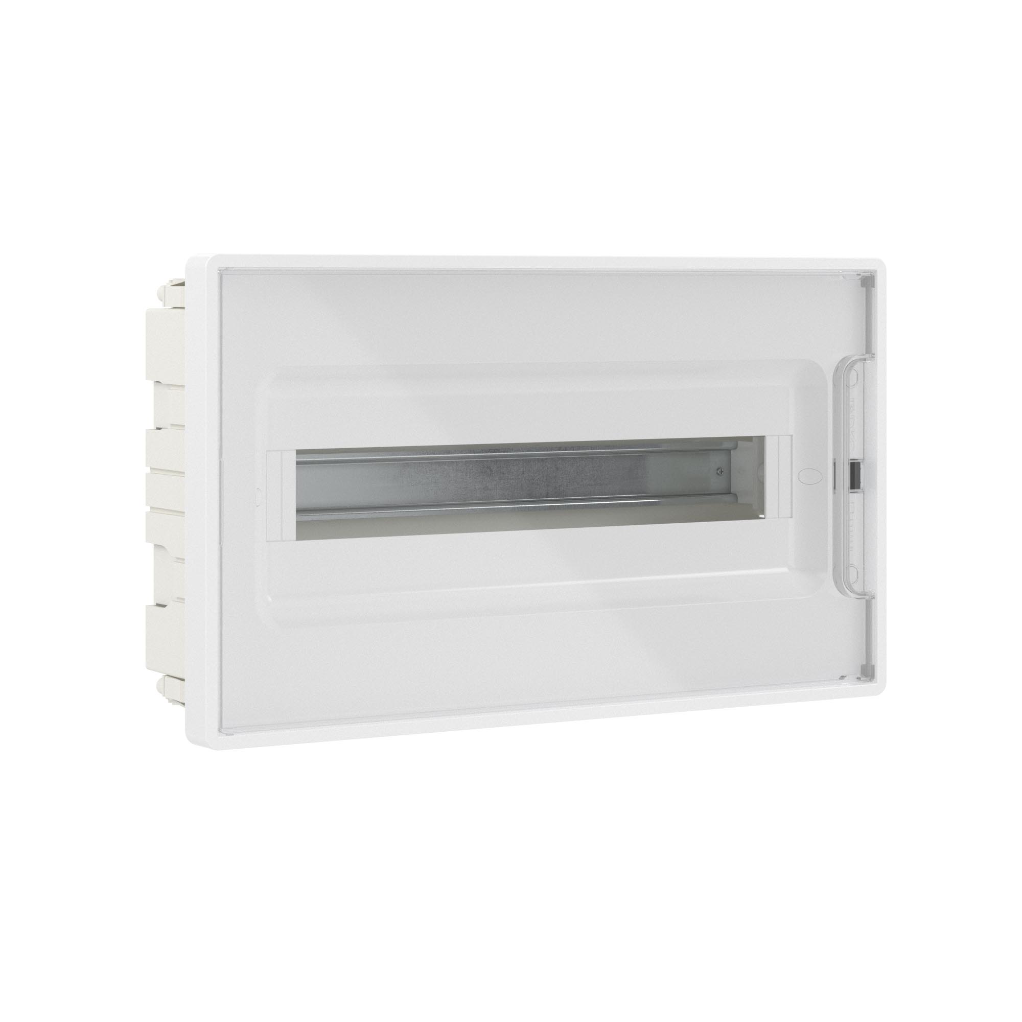 DKC Щиток 18 мод встраиваемый FRAME, белый, с прозрачной дверцей, с 2 шинами PEN на 8 и 10 отв.