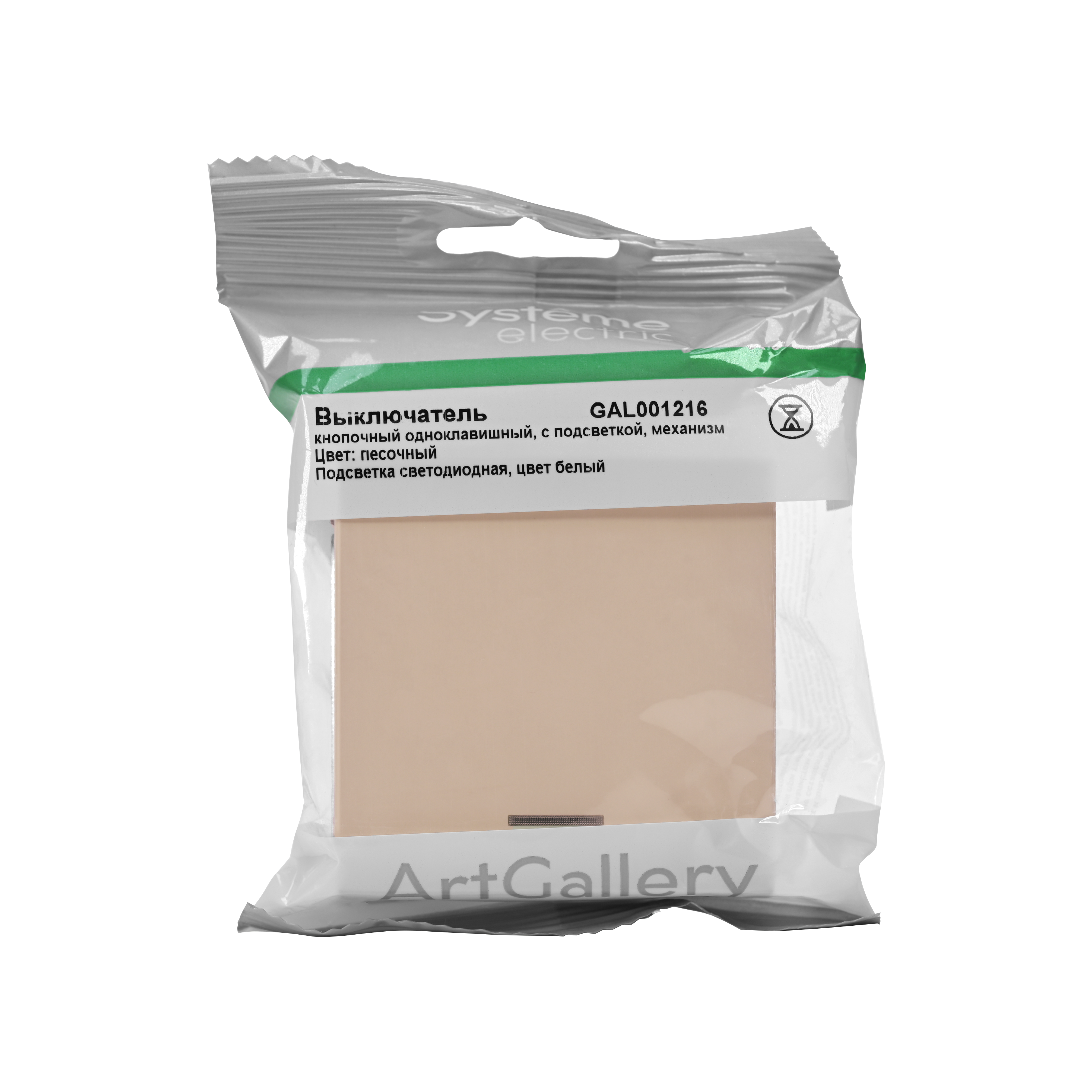 Название производителя: ARTGALLERY 1-клавишный ВЫКЛЮЧАТЕЛЬ КНОПОЧНЫЙ с подсв., 10А, механизм, ПЕСОЧНЫЙ