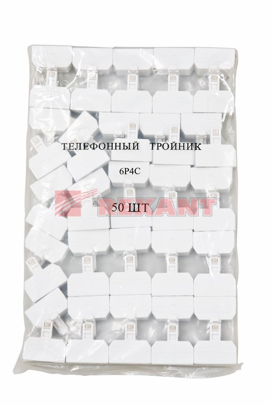 На одном конце тройника расположен штекер 6Р4С, подключающийся к телефонному гнезду 6P4C. На другом конце - три гнезда 6Р4С, предназначенные для треx телефонныx кабелей. Благодаря телефонному тройнику прокладка и эксплуатация телефонной сети становится простой и удобной.