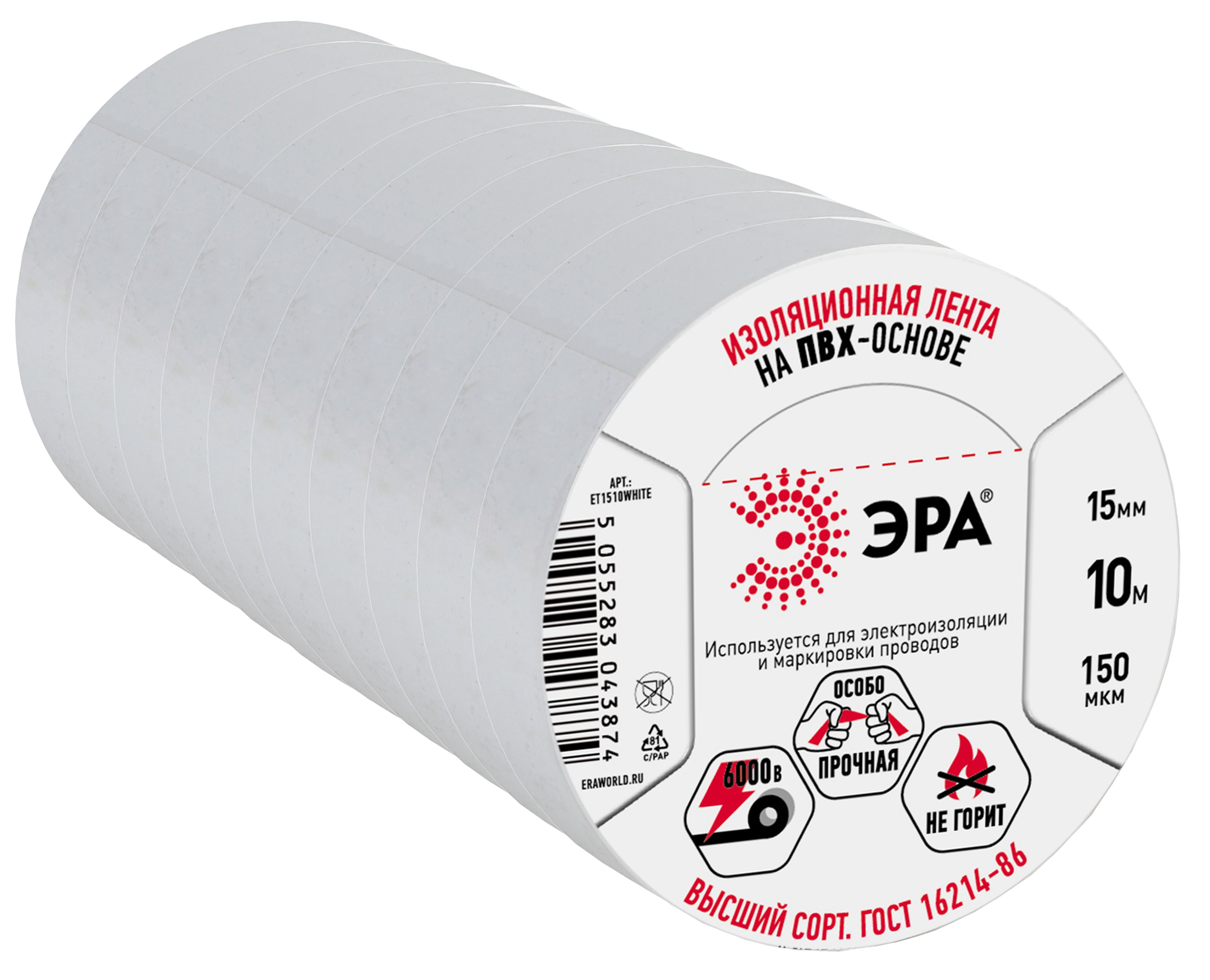 Название производителя: Изолента ЭРА ET1510WHITE ПВХ 15мм х 10м белая