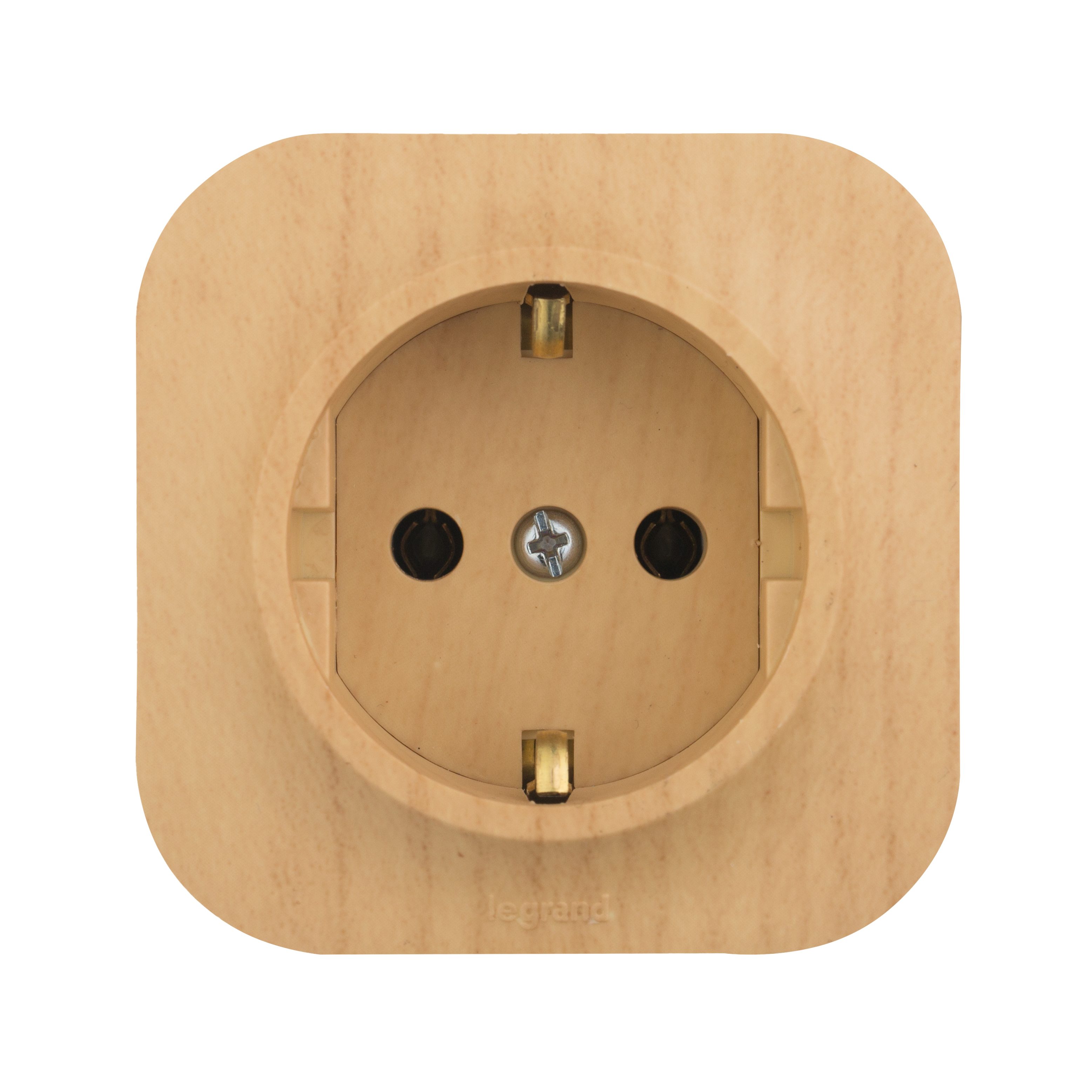 Название производителя: Розетка с заземлением - Legrand Quteo - без шторок IP20 16А 250В винтовые зажимы накладной монтаж - дерево