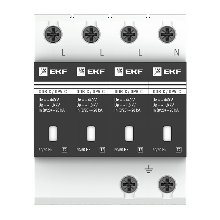 Название производителя: Ограничитель импульсных напряжений ОПВ-C/4P In 20кА 440В с сигн. EKF