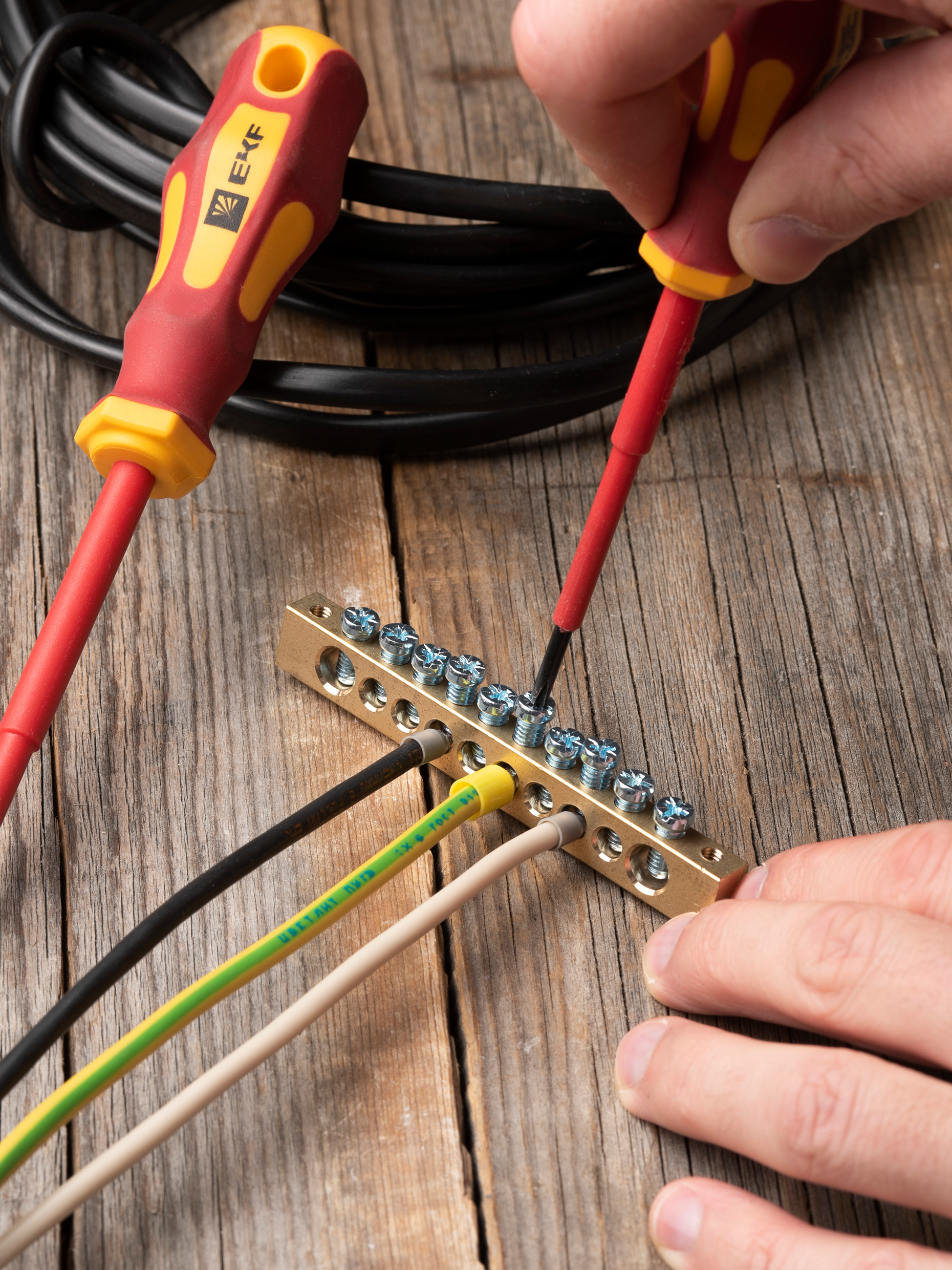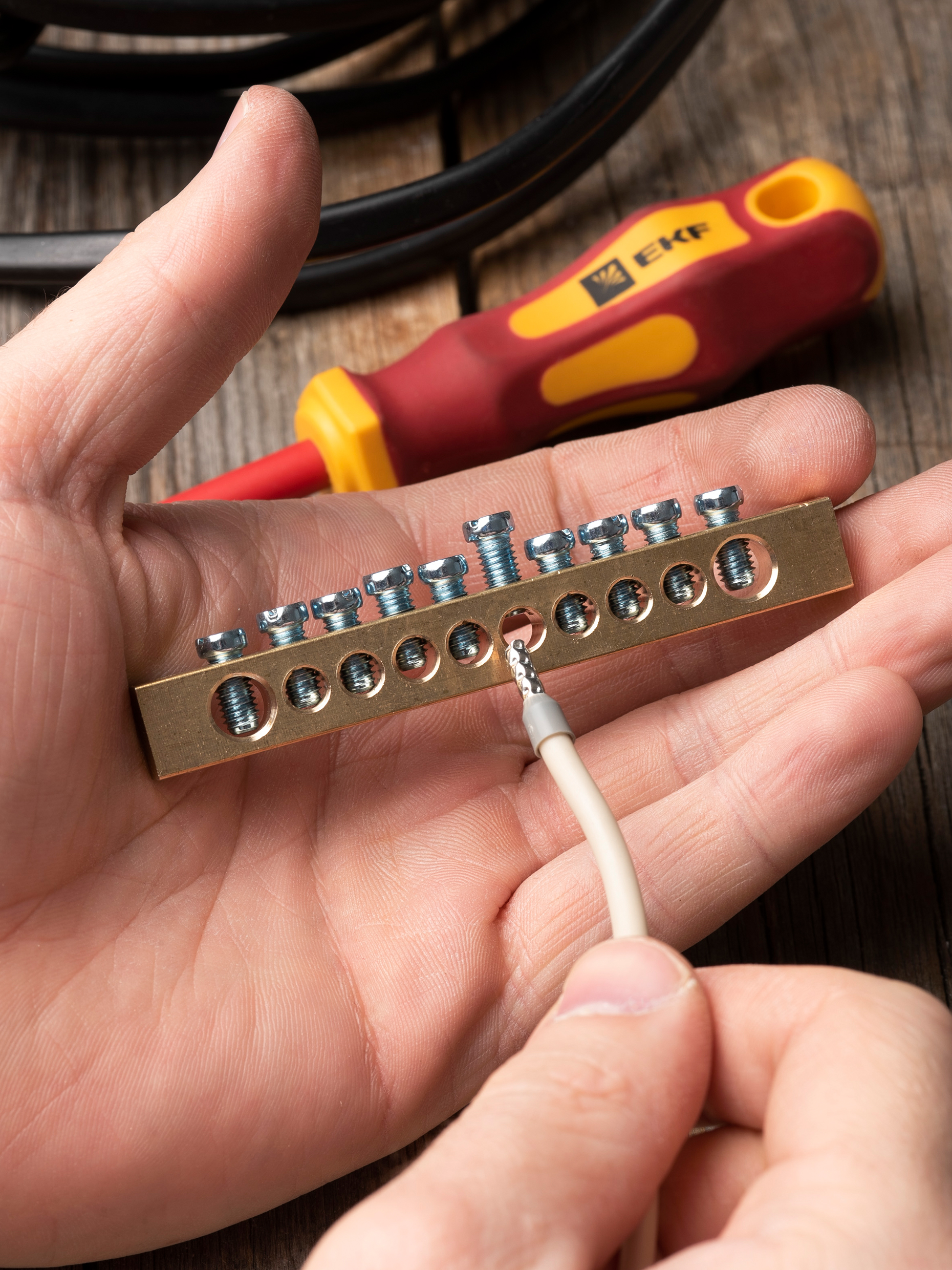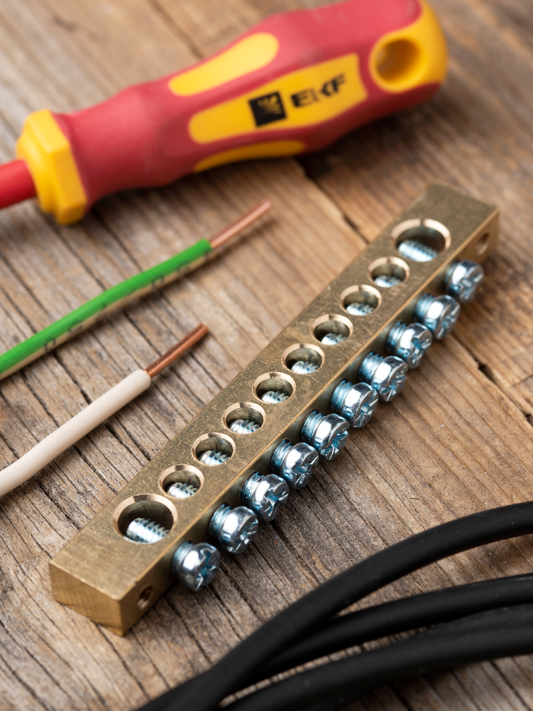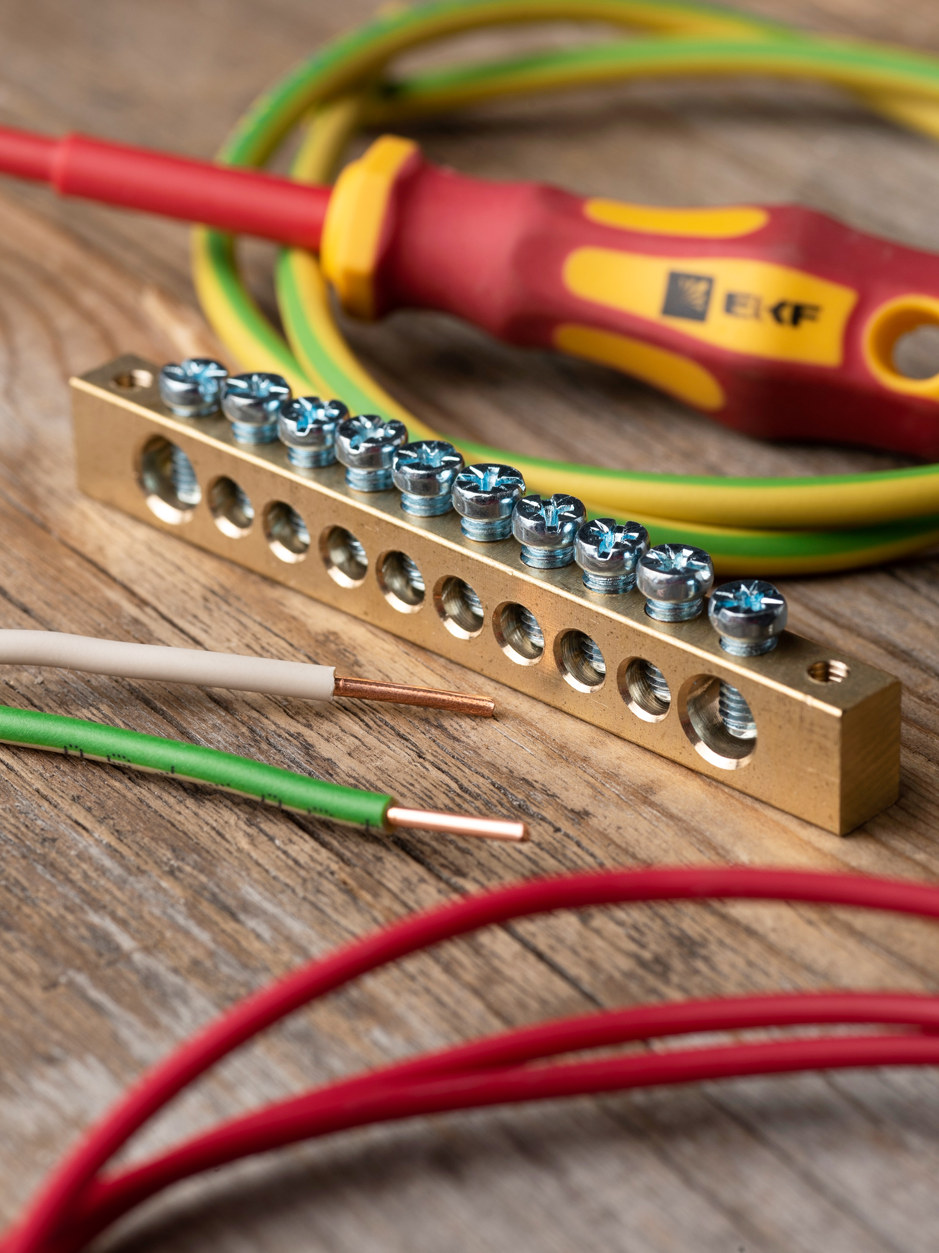 EKF PROxima Шина PEN "ноль-земля" (8х12мм) 10 отверстий латунь крепеж по краям.