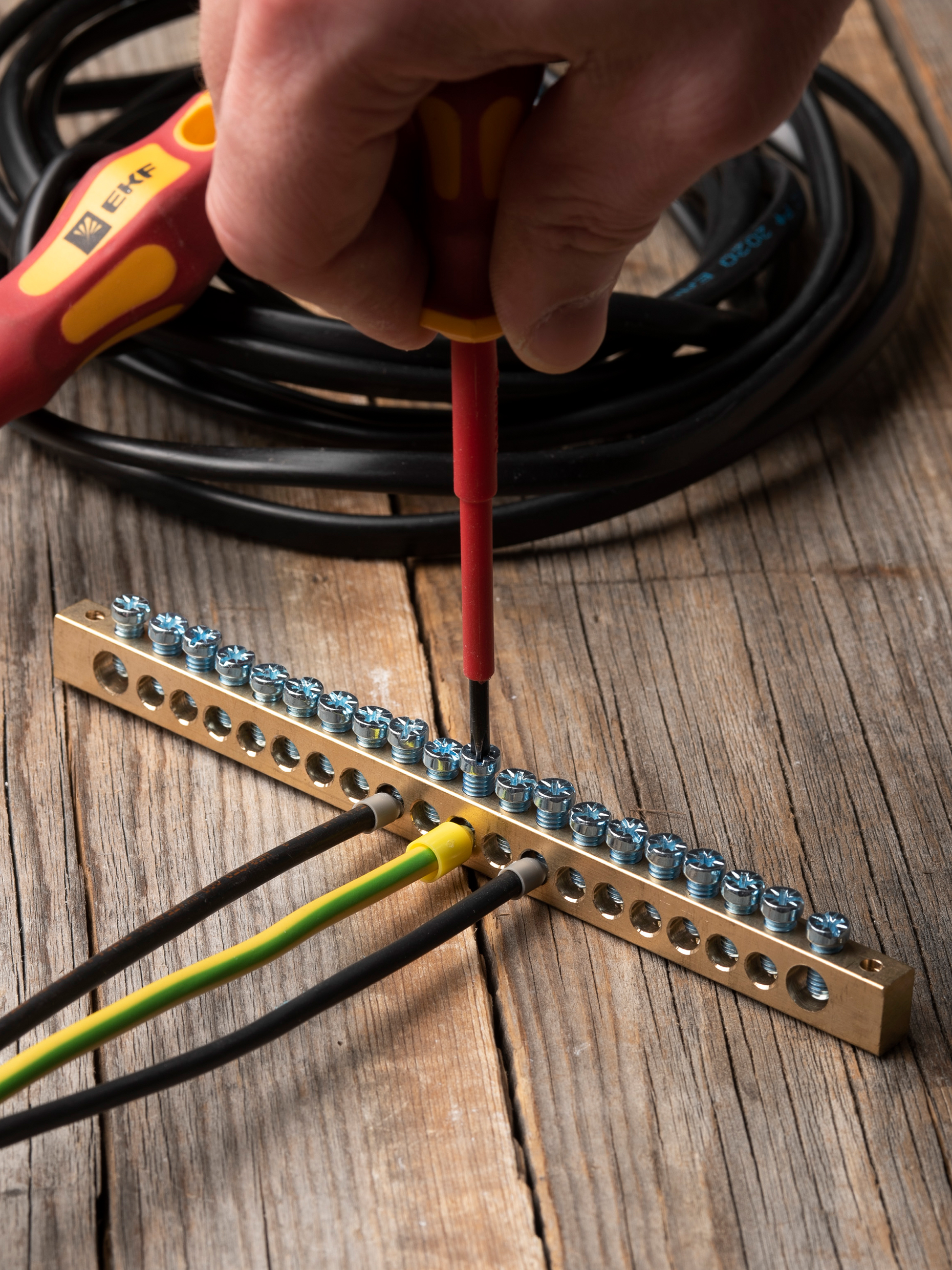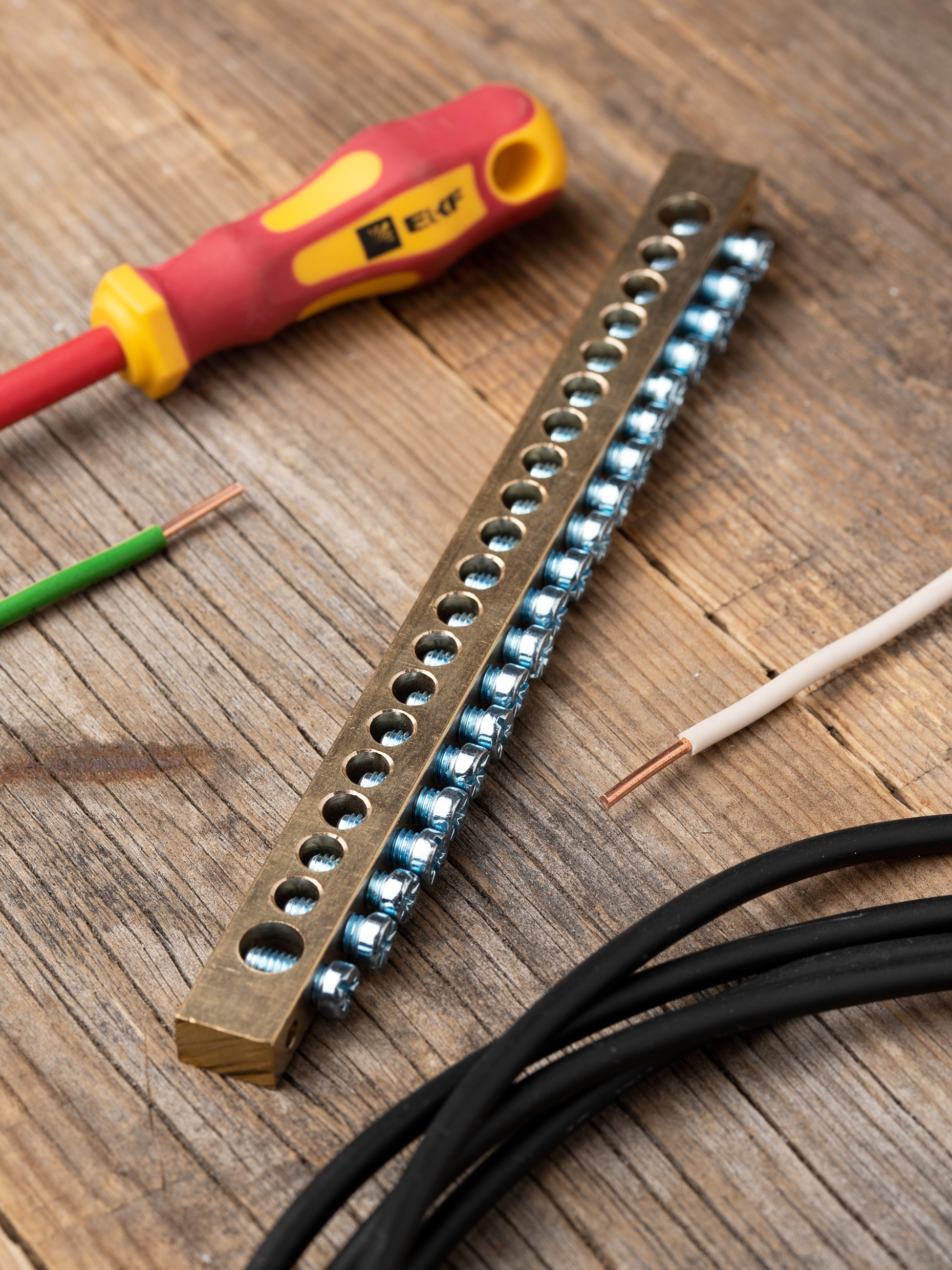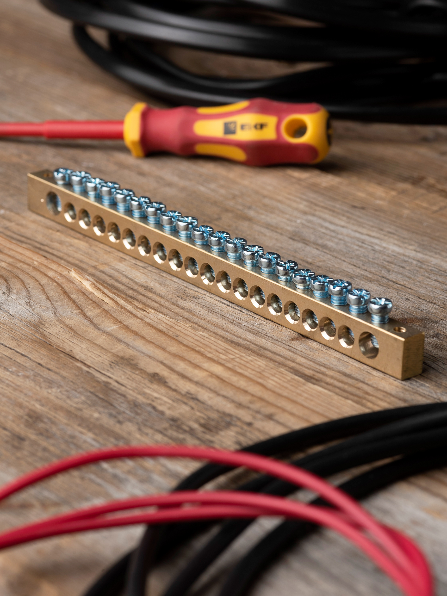 EKF PROxima Шина PEN "ноль-земля" (8х12мм) 20 отверстий латунь крепеж по краям.