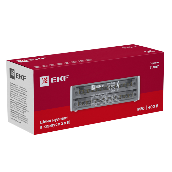 Название производителя: Шина нулевая в корпусе (2x15) EKF PROxima